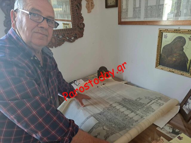 Ο κ. Αντώνης Ρούσσος είναι ο μοναδικός και τελευταίος τεχνίτης στην Πάρο που ασχολείται με την τέχνη της ξυλογλυπτικής σε εκκλησιαστικά τέμπλα.