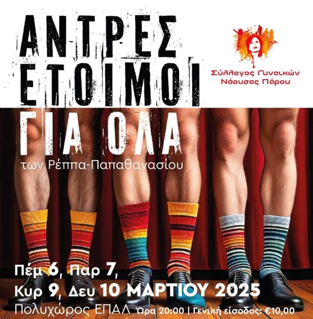 Η θεατρική ομάδα του συλλόγου γυναικών Νάουσας θα παρουσιάσουν το έργο «άνδρες έτοιμοι για όλα», των Ρέππα και Παπαθανασίου!