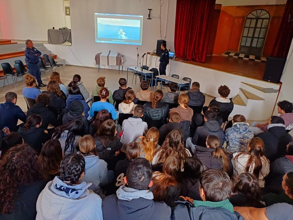 Την Πέμπτη, 13 Μαρτίου, στελέχη του Λιμενικού Σώματος επισκέφτηκαν το σχολείο προκειμένου να ενημερωθούν οι μαθήτριες και οι μαθητές μας όλων των τάξεων (Α’, Β’, Γ’), για το έργο των Σχολών Εμπορικού Ναυτικού, καθώς και των προοπτικών του ναυτικού επαγγέλματος.