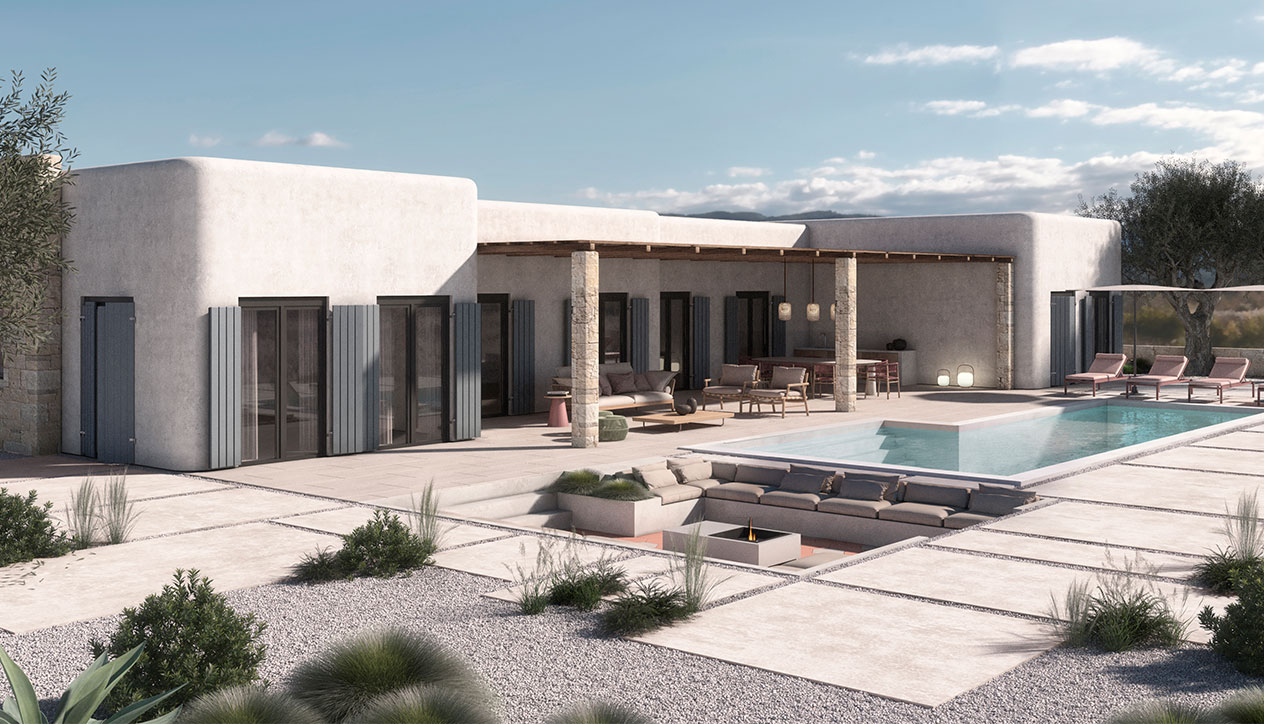 Τη μελέτη δύο ανεξάρτητων, πολυτελών, όμορων κατοικιών (villas) στην Αντίπαρο ολοκλήρωσε η ομάδα της Epitomee Design.