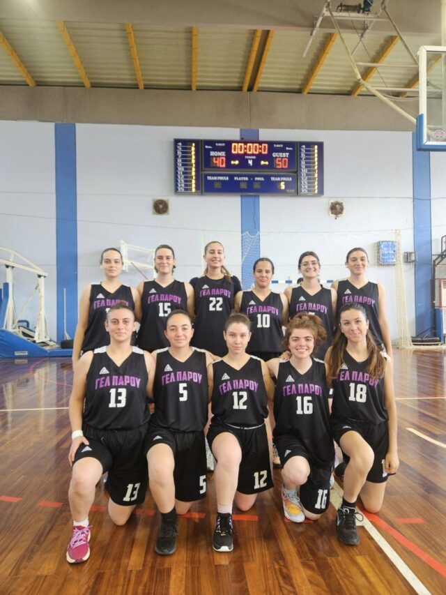 Τα κορίτσια της ομάδας καλαθοσφαίρισης του Γενικού Λυκείου Πάρου, μαζί με τον προπονητή τους και καθηγητή Φυσικής Αγωγής, Δημήτριο Λαθούρη, αντιμετώπισαν σήμερα, Τετάρτη 17 Απριλίου 2024, στο Δημοτικό στάδιο Σιταποθηκών Κερατσινίου, το Γενικό Λύκειο Πλωμαρίου, για τον τελικό αγώνα Βορείου και Νοτίου Αιγαίου.
