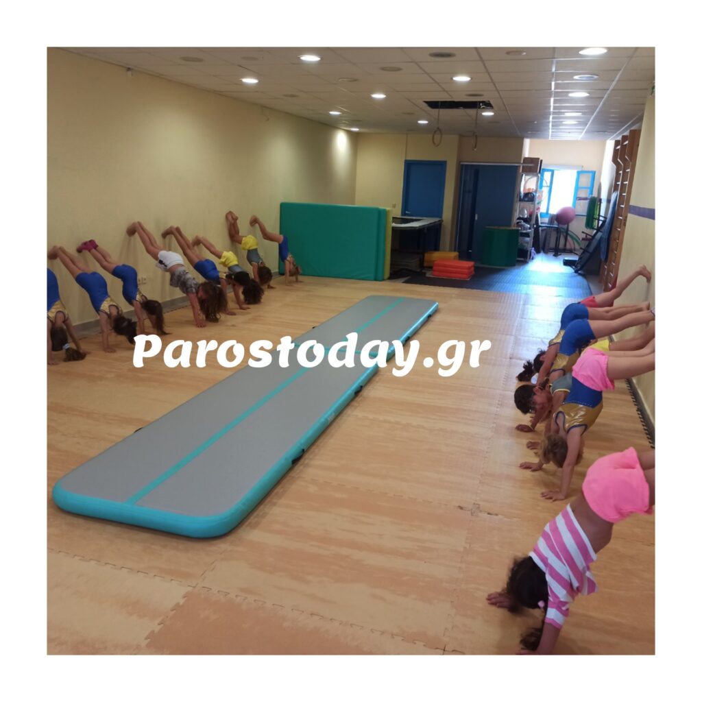 Στην ενορία του Αγίου Αθανασίου του Πάριου, στον Κώστο, γίνονται μαθήματα ενόργανης γυμναστικής και τραμπολίνο. Χάρη στον π. Νικόλαο Ανουσάκη και τη διοίκηση της αίθουσας, δίνεται η δυνατότητα να αθληθούν τα παιδιά.