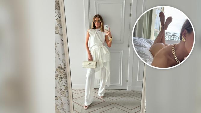 Συγκεκριμένα, πόζαρε εντελώς γυμνή στο κρεβάτι της, φορώντας μονάχα τα χρυσά της κοσμήματα.