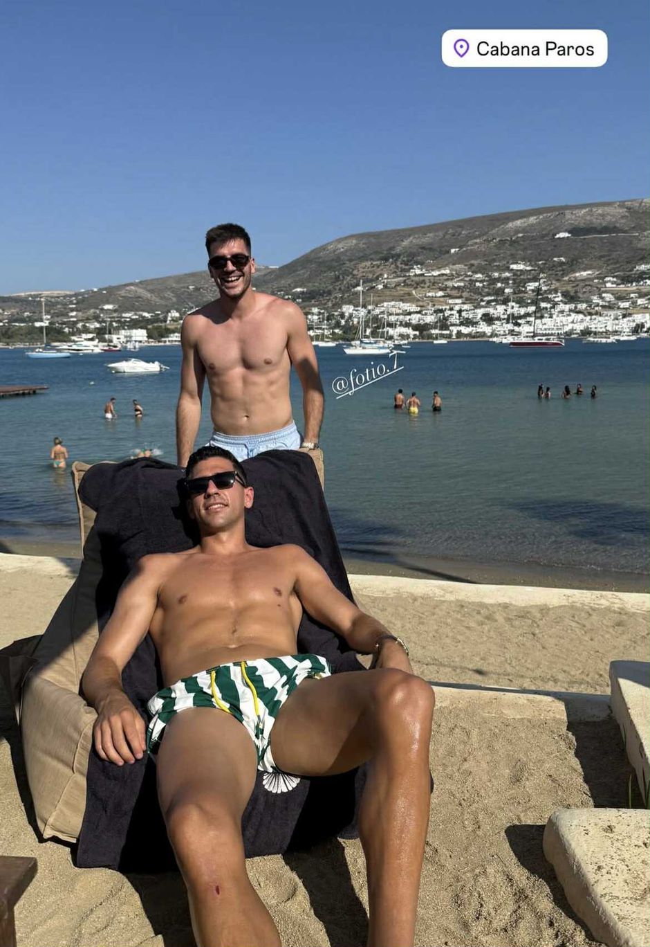 Στην Πάρο περνούν τις καλοκαιρινές τους διακοπές οι δύο διεθνείς ποδοσφαιριστές του Παναθηναϊκού, Φώτης Ιωαννίδης και Τάσος Μπακασέτας, εκμεταλλευόμενοι τις έξτρα μέρες ξεκούρασης μετά τις υποχρεώσεις τους με την Εθνική ομάδα.