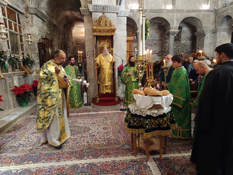 Την Πέμπτη 25 Δεκεμβρίου 2025, ο Σεβασμιώτατος Ποιμενάρχης μας, Μητροπολίτης Παροναξίας κ. Καλλίνικος, χοροστάτησε στον Όρθρο, ευλόγησε τους προσφερθέντες άρτους και προεξήρχε της Θείας Λειτουργίας, πλαισιούμενος από τους πατέρες του Ιερού Προσκυνήματος, Πρωτοπρεσβυτέρους π. Στυλιανό Μπιζά και π. Χρήστο Πετρόπουλο, καθώς και τους Διακόνους π. Δαυίδ Καρυτινό και π. Παναγιώτη Κοσμόπουλο.
