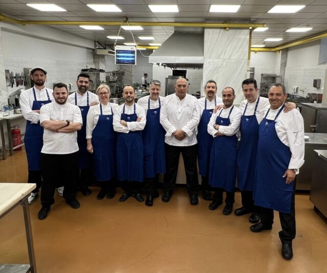 Έντεκα καταξιωμένοι μάγειρες και μαγείρισσες από τις Κυκλάδες με επικεφαλής τον σεφ με καταγωγή από Μύκονο και Πάρο, Κώστα Μπουγιούρη, ετοίμασαν το επίσημο γεύμα.