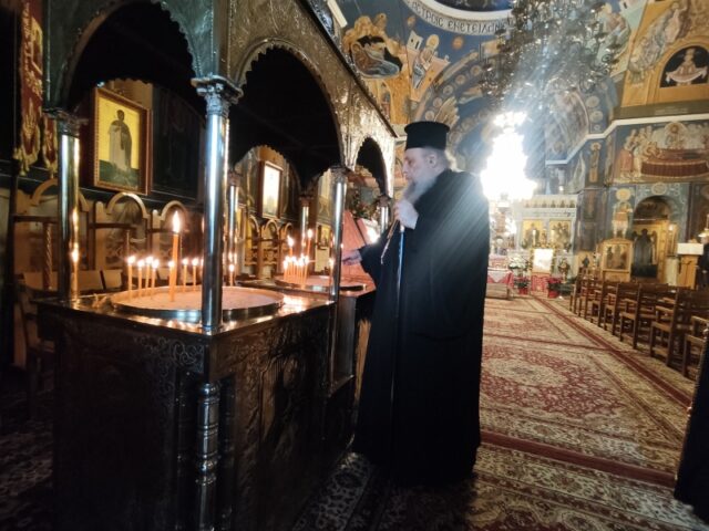 Τον Σεβασμιώτατο Ποιμενάρχη μας πλαισίωσαν ο Ιεροκήρυκας της Ιεράς Μητροπόλεως Αρχιμ. Αρσένιος Μελισσιανός (ο οποίος και κήρυξε τον θείο λόγο), ο Πρωτοπρ. π. Εμμανουήλ Τζιώτης (οικείος εφημέριος) και ο Διάκ. π. Δαυίδ Καρυτινός.