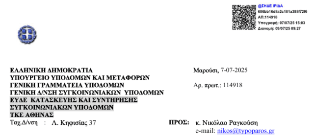 Διαβάστε την απάντηση του υπουργείου προς την εφημερίδα «Φωνή της Πάρου»