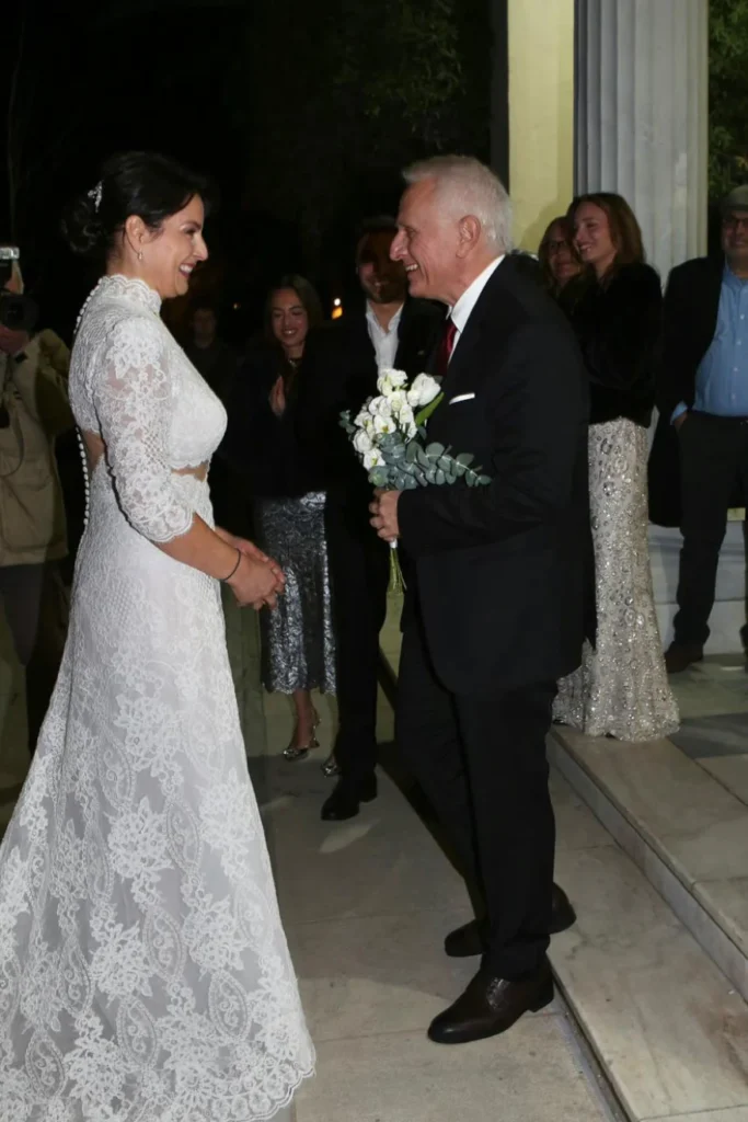Το μυστήριο τελέστηκε σε στενό οικογενειακό και φιλικό κύκλο με κουμπάρους τους Γιώργο και Άννα Μακρόπουλο.