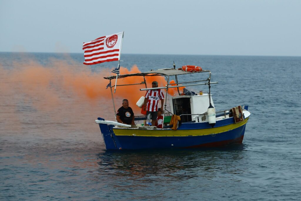 Αρχικά, οι κούπες έφτασαν στο λιμάνι του νησιού όπου πραγματοποιήθηκε μια λαμπρή εκδήλωση με πλήθος φιλάθλων να σπεύδει για να τις δει από κοντά και να βγάλει αναμνηστικές φωτογραφίες.