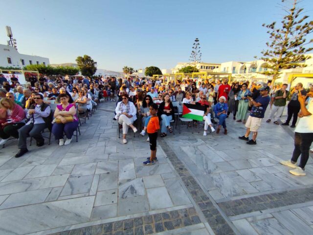 Στην εκδήλωση της Παροικιάς, μίλησαν εκπρόσωποι συλλόγων και φορέων, ενώ κεντρικός ομιλητής ήταν ο ιστορικός και δημοτικός σύμβουλος Πάρου, Αναστάσης Γκίκας, που μίλησε για την απάνθρωπη κατάσταση που βιώνουν οι πολίτες της Παλαιστίνης με την πείνα, τη δίψα και τους βομβαρδισμούς.