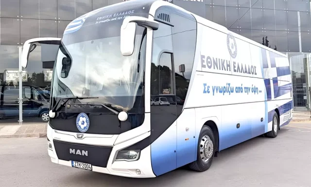 Η Εθνική ομάδα ποδοσφαίρου παρέλαβε ένα ολοκαίνουργιο Man Lion’s Coach R07. Πρόκειται για ένα σύγχρονο λεωφορείο το οποίο μπορεί να μεταφέρει έως 44 επιβάτες και να τους προσφέρει αρκετές ανέσεις.