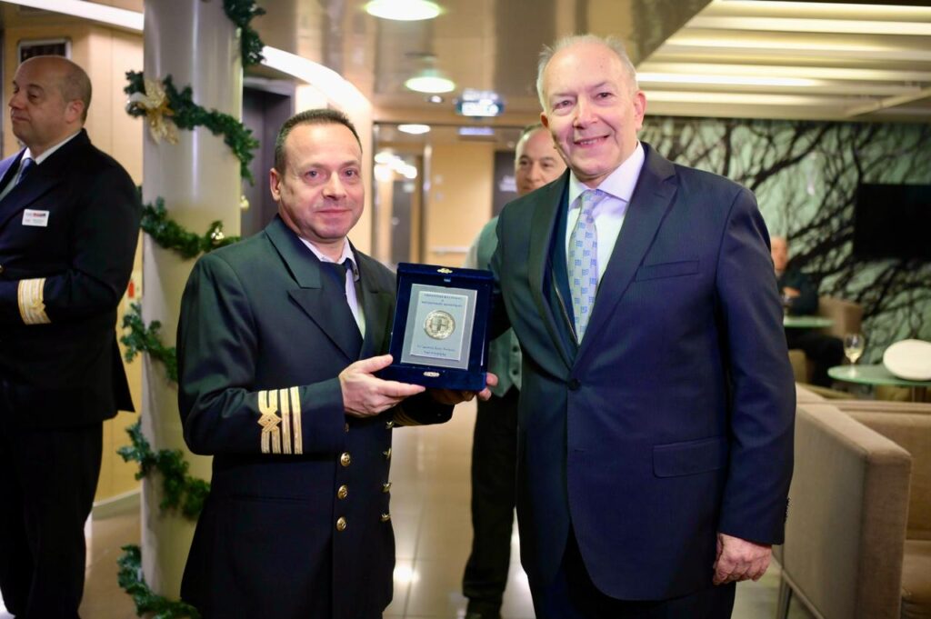 Στη συνέχεια ο υφυπουργός Ναυτιλίας και Νησιωτικής Πολιτικής, Στέφανος Γκίκας, μαζί με τον Αρχηγό του Λιμενικού Σώματος – Ελληνικής Ακτοφυλακής, Αντιναύαρχο Τρύφωνα Κοντιζά και στελέχη του Σώματος, υποδέχθηκαν το πρώτο εισερχόμενο πλοίο της χρονιάς.