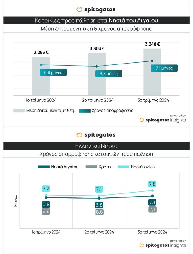 Στα νησιάτου Ιονίου και της Κρήτης ο χρόνους απορρόφησης των κατοικιών προς πώληση από την αγορά, διαμορφώνονται στους 7 μήνες.