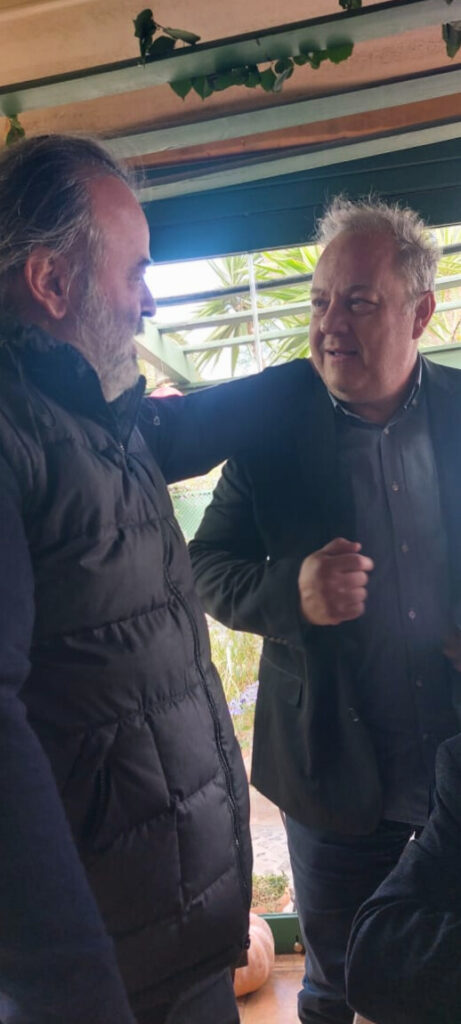 Ο Υπεύθυνος Στρατηγικού Σχεδιασμού και Ανάπτυξης της SEAJETS Μάριος Ηλιόπουλος συνομιλεί με τον καθηγητή Σεισμολογίας, Κώστα Παπαζάχο.