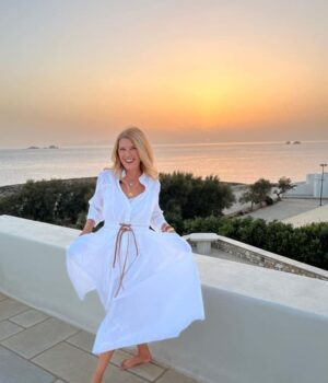 Η πρώην σύζυγος του Γιάννη Πάριου, ηθοποιός και παρουσιάστρια έχει δημιουργήσει το δικό της σπίτι και δραστηριοποιείται επιχειρηματικά στο νησί.