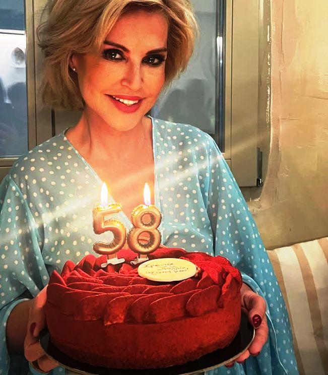 Η ηθοποιός δημοσίευσε στον προσωπικό της λογαριασμό στο Instagram μία φωτογραφία στην οποία ποζάρει κρατώντας μια μεγάλη τούρτα με δυο χρυσά κεριά που γράφουν «58».
