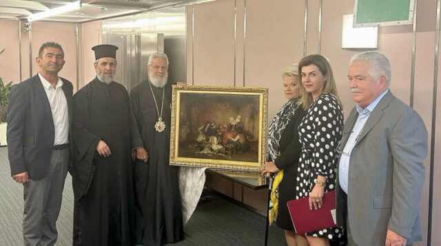 Ο πίνακας «Το παραμύθι της γιαγιάς» δόθηκε στο ίδρυμα διά του Σεβασμιότατου Μητροπολίτη Σύρου και Τήνου και Προέδρου του ΠΙΙΕΤ κ. Δωροθέου Β’, ενώ παρόντες στη διαδικασία ήταν και ο Αντιπρόεδρος της Διοικούσης του Ιερού Ιδρύματος, ο Αρχιερατικός Επίσκοπος Τήνου και ο δικηγόρος, Δημήτρης Σιώτης.