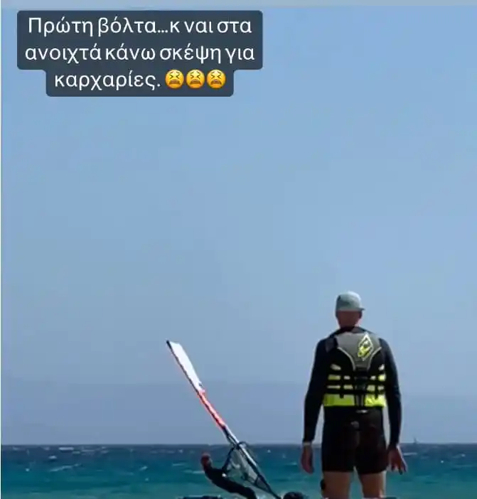 «Πρώτη βόλτα και ναι… στα ανοιχτά κάνω σκέψη για καρχαρίες», έγραψε στο σχόλιο της ανάρτησης, το οποίο κατέγραψε ο σύζυγός της, Θοδωρής Μαροσούλης.