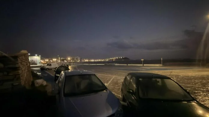 Σοβαρά προβλήματα προκάλεσε η έντονη κακοκαιρία και στην Τήνο το Σάββατο (10.01.2026). Ισχυρά κύματα εισέβαλαν στον χώρο στάθμευσης του λιμανιού και παρέσυραν σταθμευμένα αυτοκίνητα.