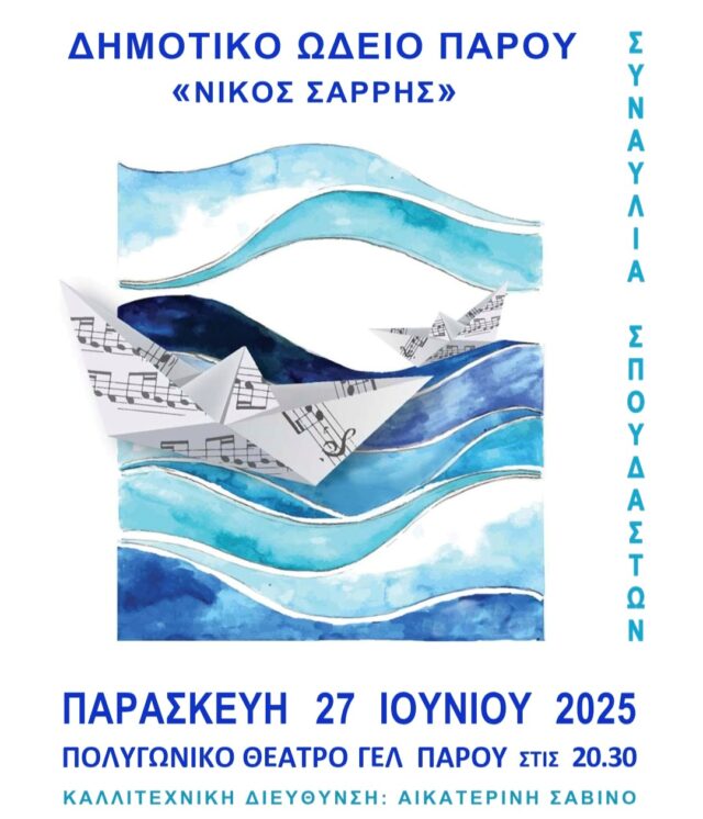 Την Παρασκευή, 27 Ιουνίου και ώρα 20:30 στο Πολυγωνικό Θέατρο του ΓΕΛ Πάρου, θα πραγματοποιηθεί θερινή συναυλία του δημοτικού ωδείου Πάρου, «Νίκος Σαρρής».