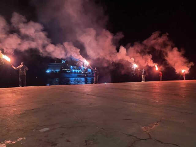 Αρχική Κυκλάδες Υποδοχή πλοίων με καπνογόνα στη Μήλο